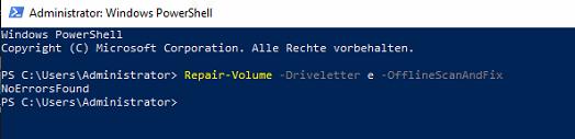 Repair-Volume -DriveLetter E -OfflineScanAndFix